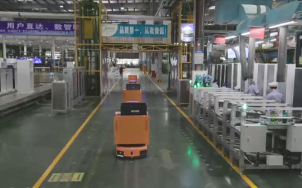 为车载冰箱物流配送打造的智能解决方案,,,,包含产中物流通过潜伏举升AMR搬运至线边,,,产后成品物流智能仓储,,流程包含产中物流智能齐套入库,,,线边安灯叫料AMR智能配送至线边,,,,成品入库、、、、出库,,,,通过无人堆高车机器人,,智能仓储管理替代人工作业管理,,,实现更高存储、、、、更高效率、、、、更具柔性化的解决方案。。。